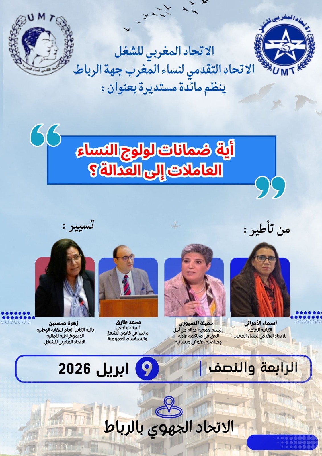 تم يومه الاحد 15 فبراير 2026 بالمقر المركزي للاتحاد المغربي للشغل بالدارالبيضاء وبحضور الاخ احمد ... أكمل القراءة »الاخ احمد بهنيس في اجتماع النقابة الموحدة للمواد الغذائية يشيد بالديناميه التنظيميه التي يعرفها الاتحاد المغربي للشغل